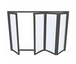 Low profile 4 panel bi-fold door system. Matte Black Aluminum Framed with tempered Low E glass, Standard Black matching hardware and cylinder lock. From outside looking in customer can select orientation of door: left handle with doors folding right or right handle with doors folding left.